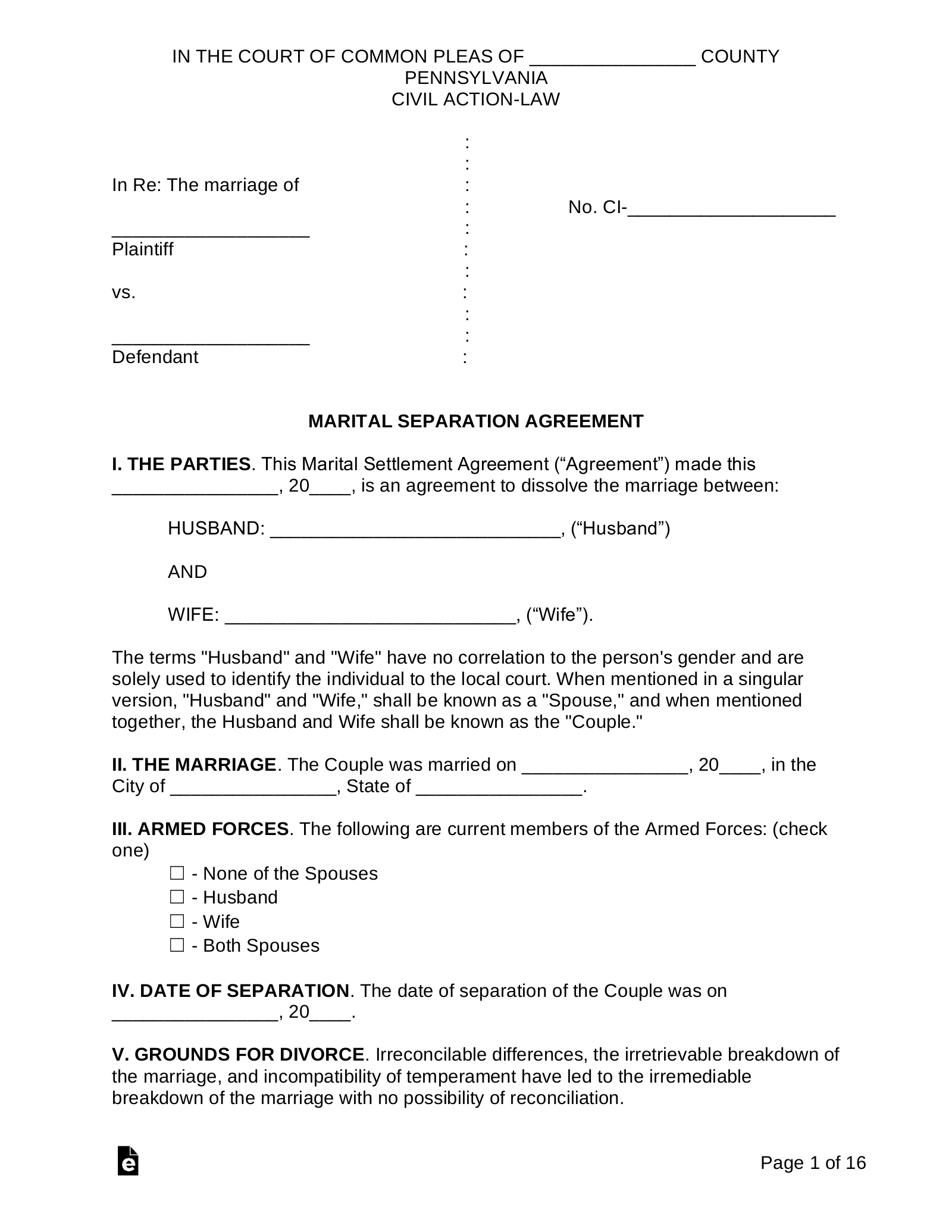 Marital Settlement Agreement
