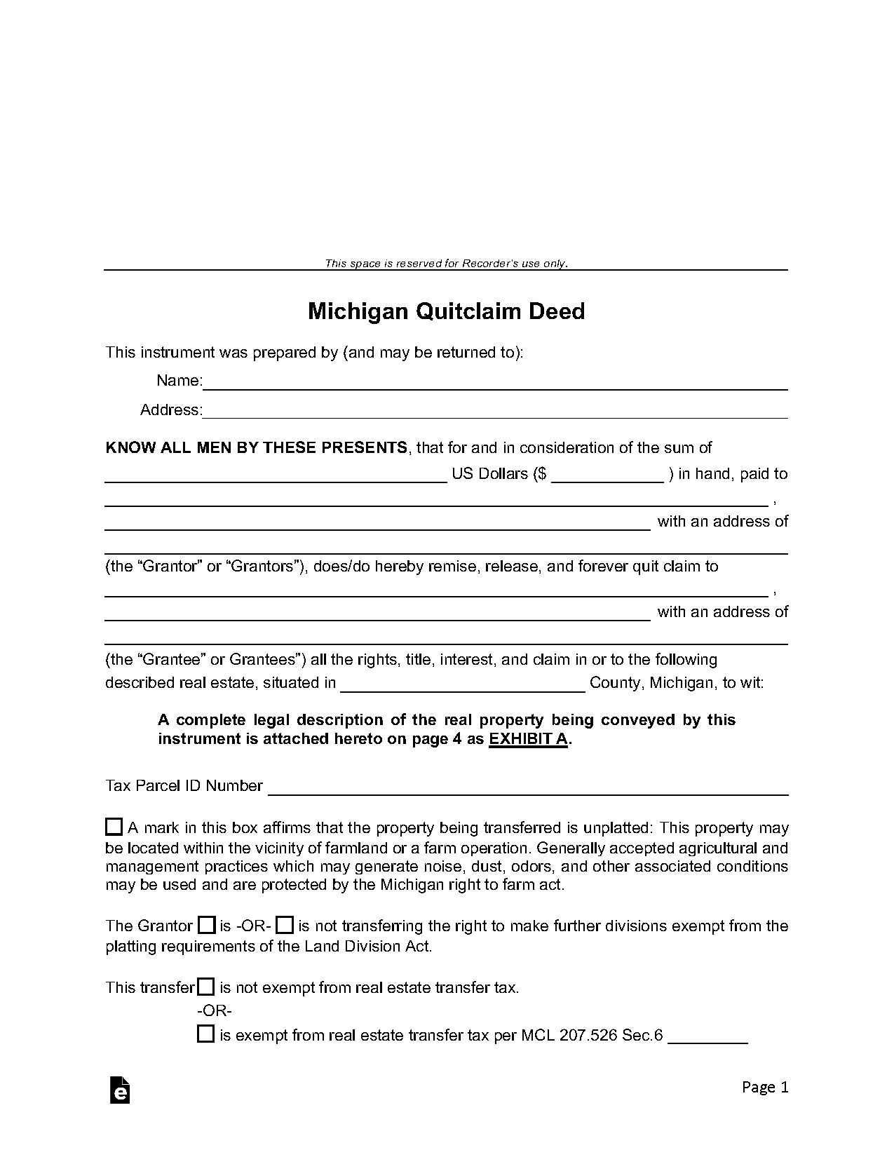 Michigan Quit Claim Deed