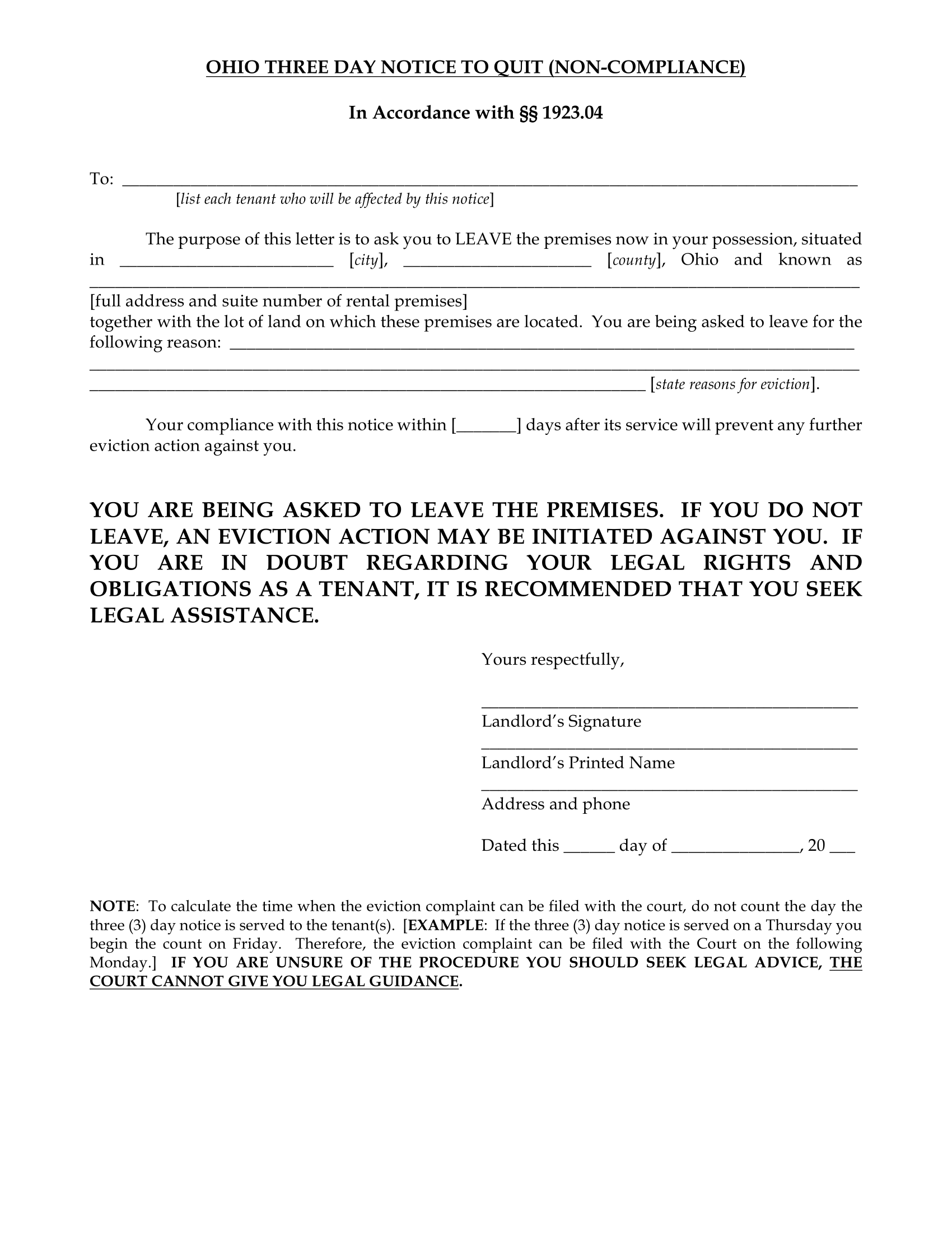 Ohio Eviction Notice Form