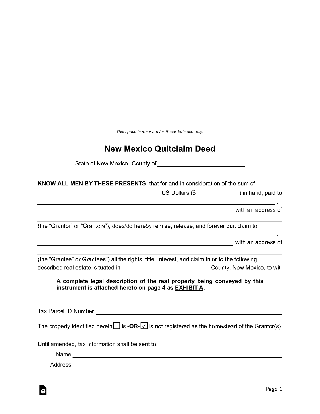 For simply updating a name, a quitclaim deed is commonly used (NMSA § 47-1-30). It essentially says: “I’m transferring whatever ownership I have in this property to the new name.” That’s usually sufficient when ownership isn’t changing, just the name.